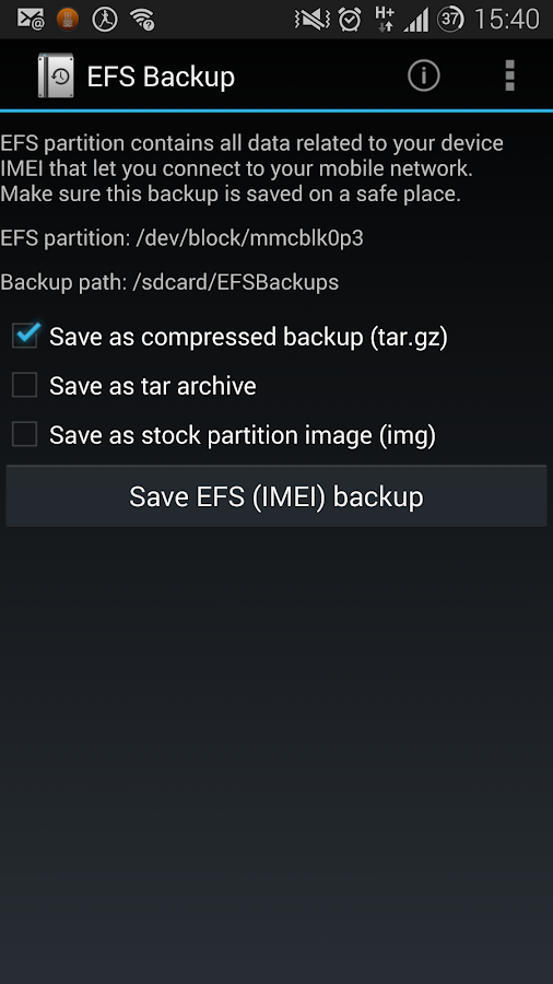 لعمل نسخة احتياطة لملف EFS وحفظ رقم IMEI من الضياع